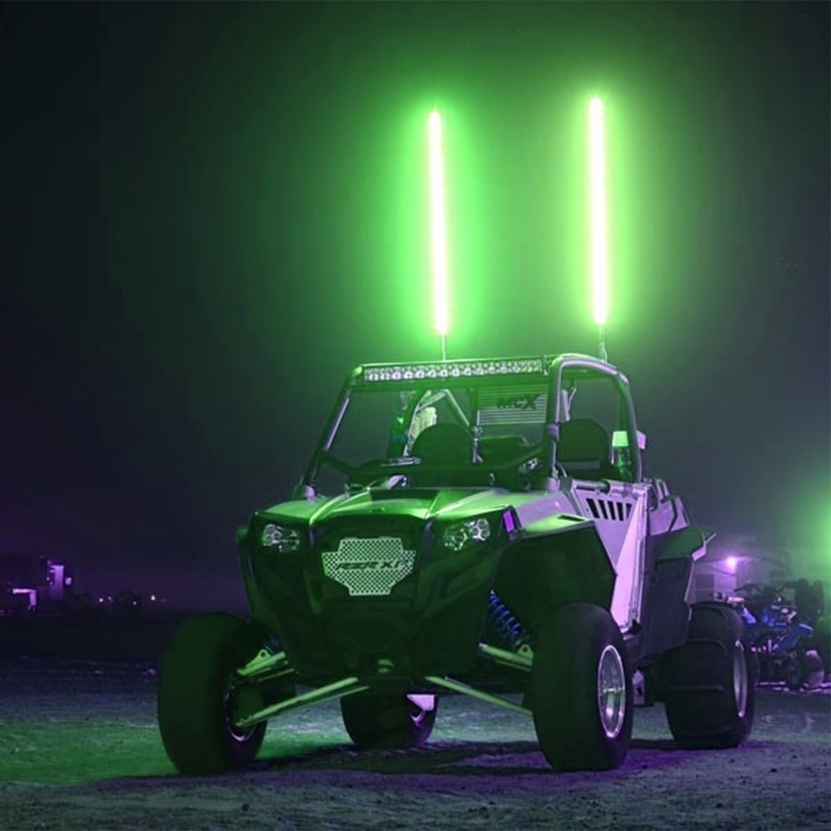 ANT012 ANTENA PARA UTV / PICK UPS 12V 1.8 METROS DE LARGO, 120 LED 5050 SMD RGB, BASE METALICA Y BANDERA DE REGALO