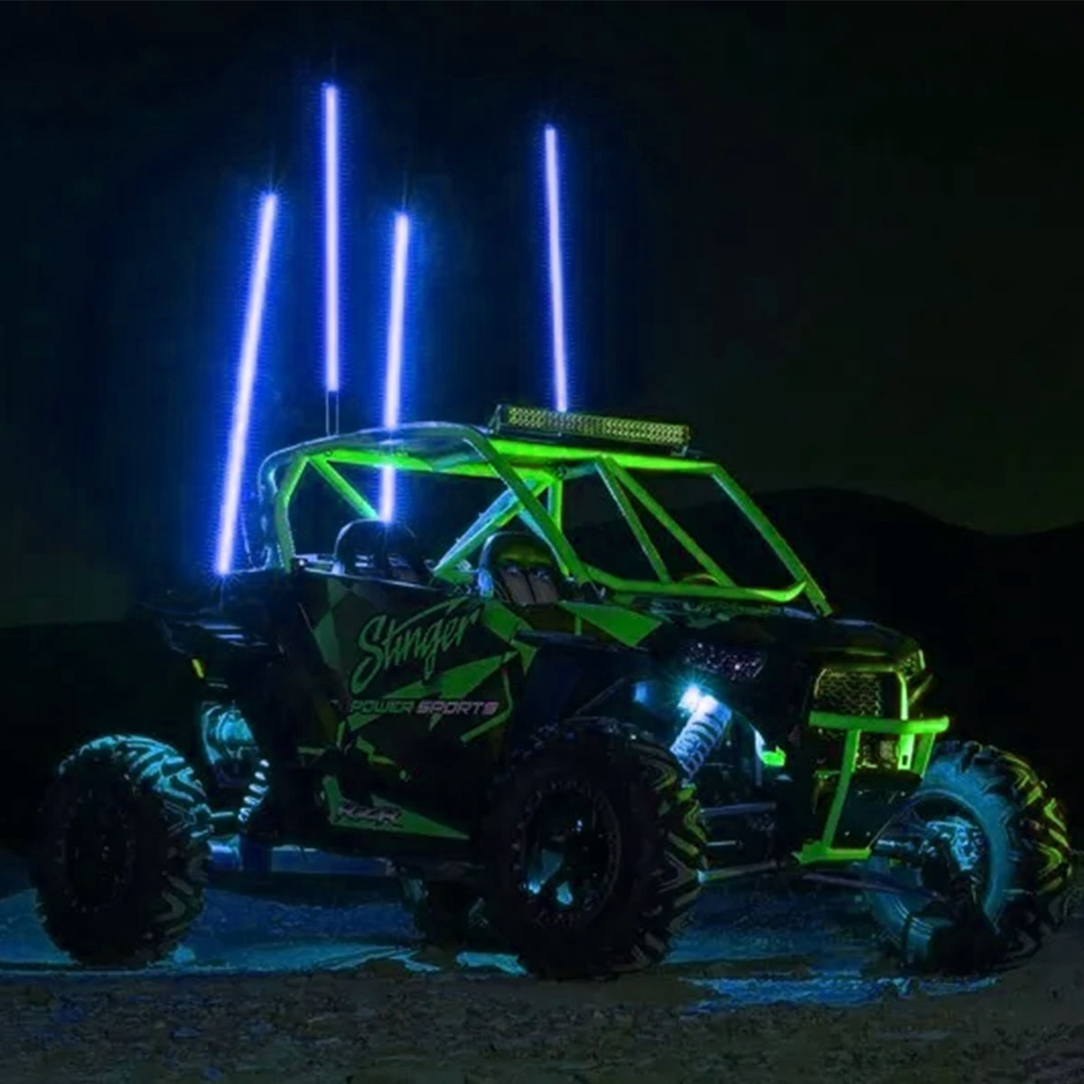 ANT004 ANTENA PARA UTV / PICK UPS 12V 1.5 METROS DE LARGO, 120 LED 5050 SMD COLOR AZUL, BASE METALICA Y BANDERA DE REGALO
