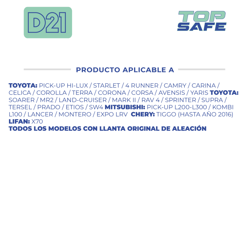 D21 BULON ANTIRROBO ROSCA 12X1.5 CONICO, HEXAGONO 21MM, LARGO 26MM. MARCAS: TOYOTA / MITSUBISHI / CHERY / LIFAN