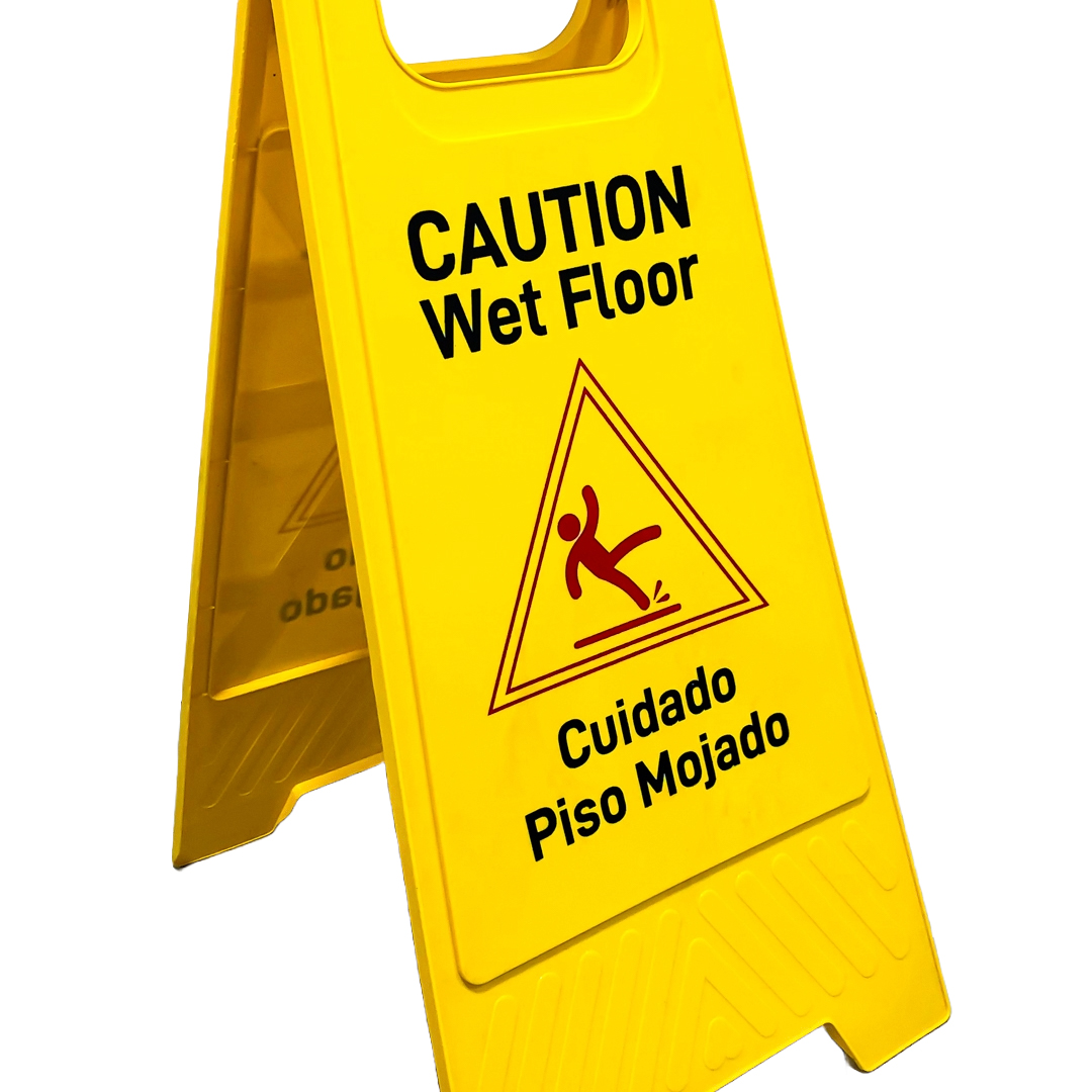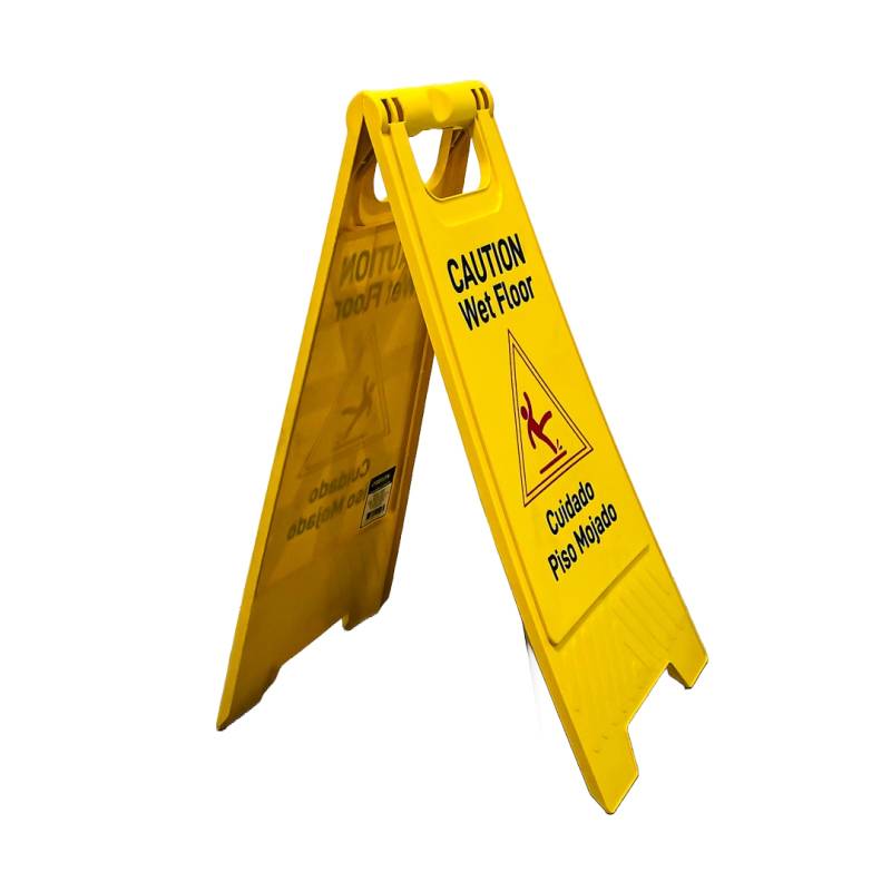 CAR001 CARTEL SEÑALIZADO PISO MOJADO TIPO CARPA COLOR AMARILLO 62 CM X 30 CM PESO 600 GRAMOS