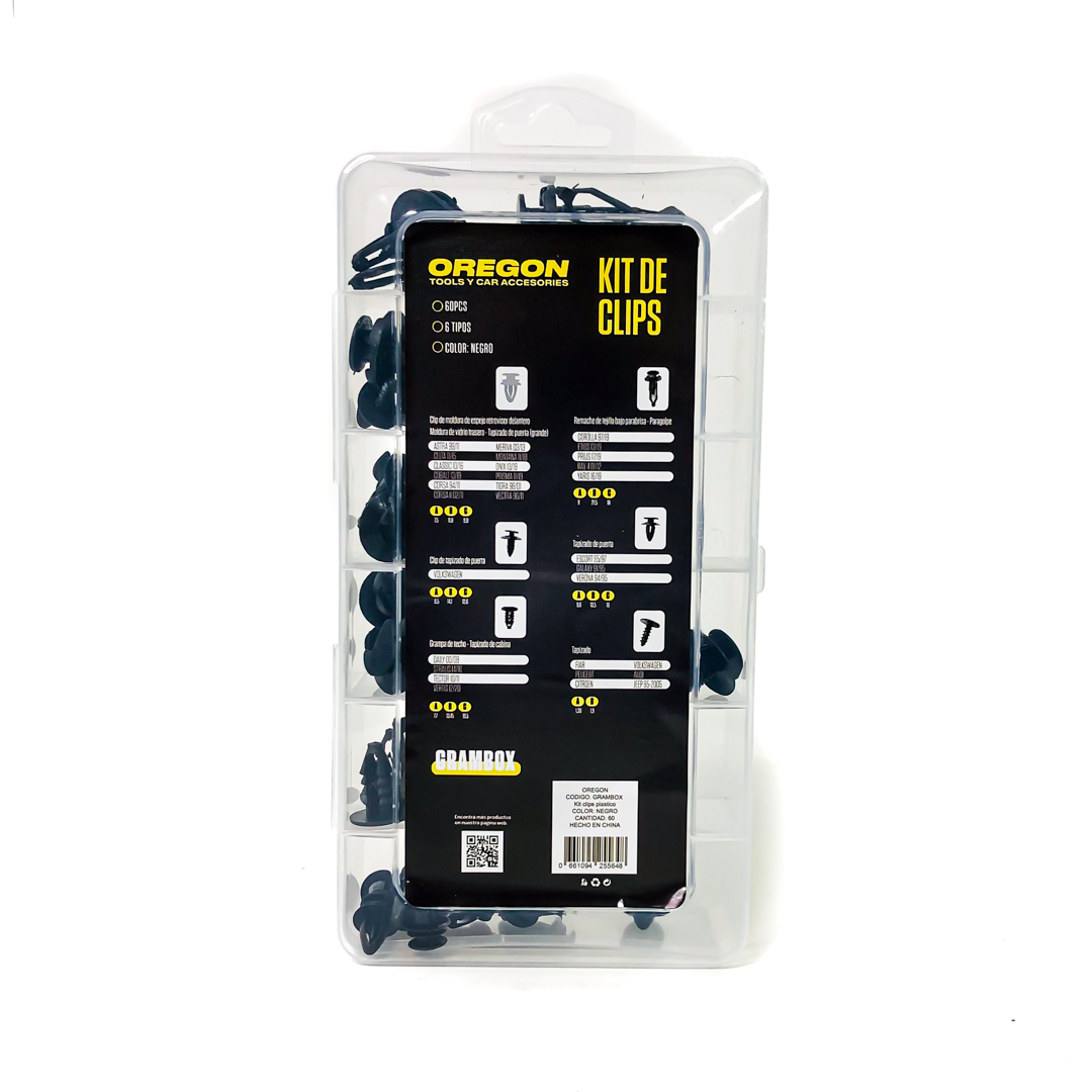 GRAMBOX CLIPS PLASTICOS CAJA SURTIDA CON 60 CLIPS (10 DE CADA MODELO VER EN FOTO) COLOR NEGRO
