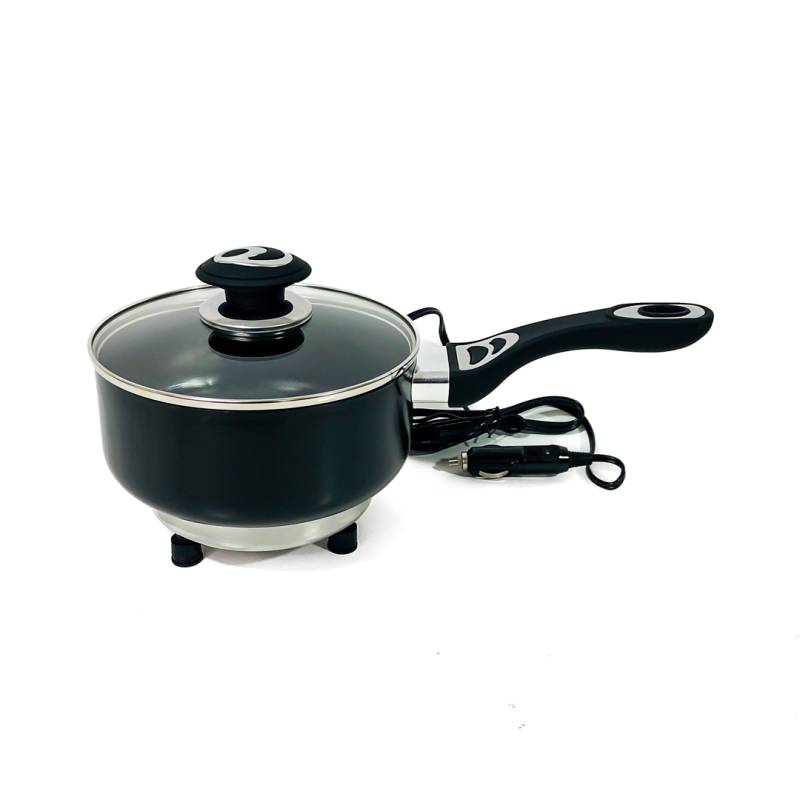 FRY00112V FREIDORA 12V OLLA Y FREIDORA CON CONEXION 12V CON CUERPO DE ALUMINIO Y TEFLON, MANGO DE GOMA Y TAPA DE VIDRIO 10CM DE DIAMTERO X 10 CM DE ALTOCAMPING