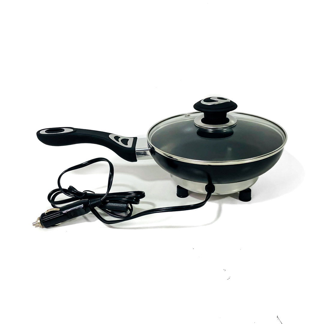 FRY00212V FREIDORA 12V OLLA Y FREIDORA CON CONEXION 12V CON CUERPO DE ALUMINIO Y TEFLON, MANGO DE GOMA Y TAPA DE VIDRIO 10CM DE DIAMTERO X 4 CM DE ALTOCAMPING