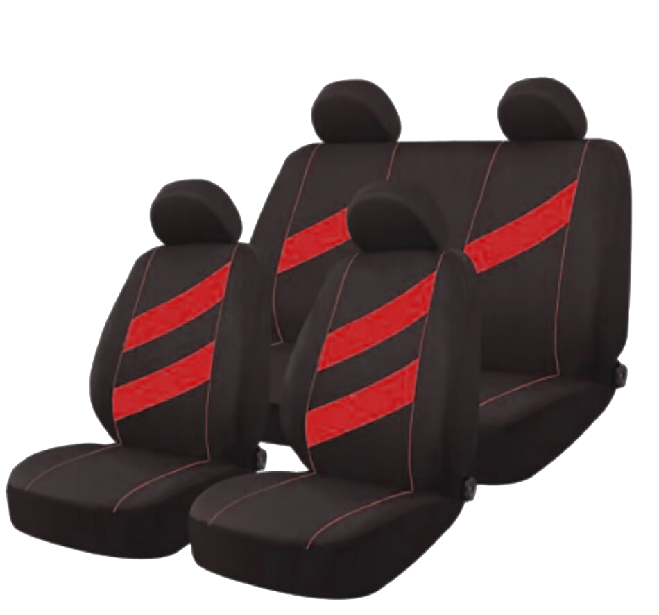 FUN007 FUNDA CUBRE ASIENTO 9 PIEZAS DE TELA COLOR NEGRO CON DETALLES ROJO