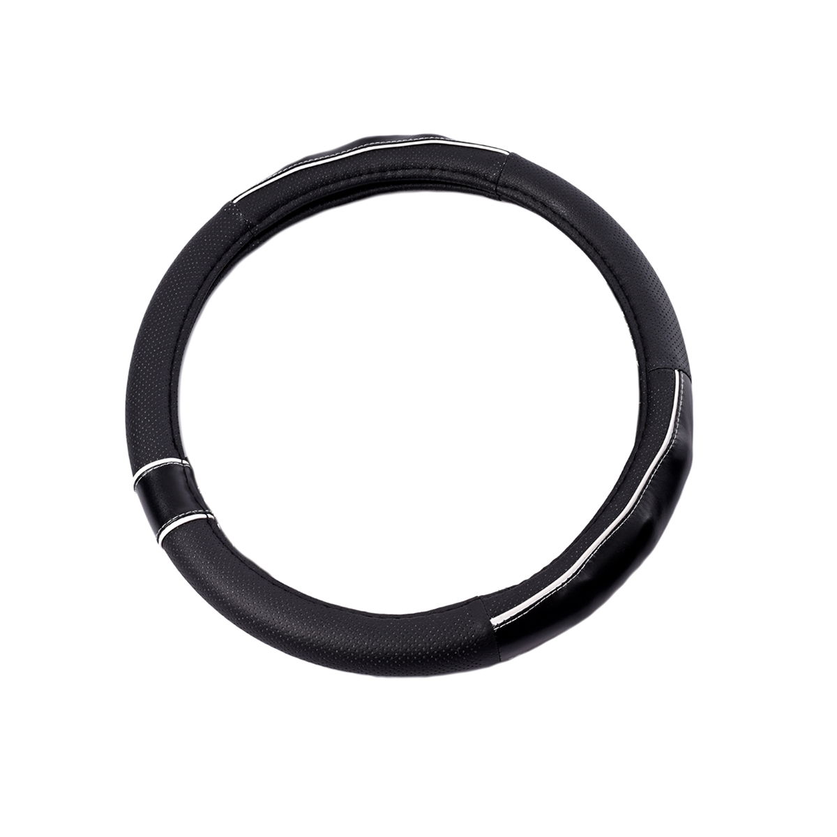 CUBRE VOLANTE CUERO 38CM CON BORDE DETALLADO NEGRO / BLANCO 388.2 CANTIDAD POR CAJA 25