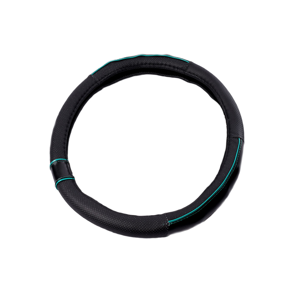 CUBRE VOLANTE CUERO 38CM CON BORDE DETALLADO NEGRO / VERDE 388.2 CANTIDAD POR CAJA 25