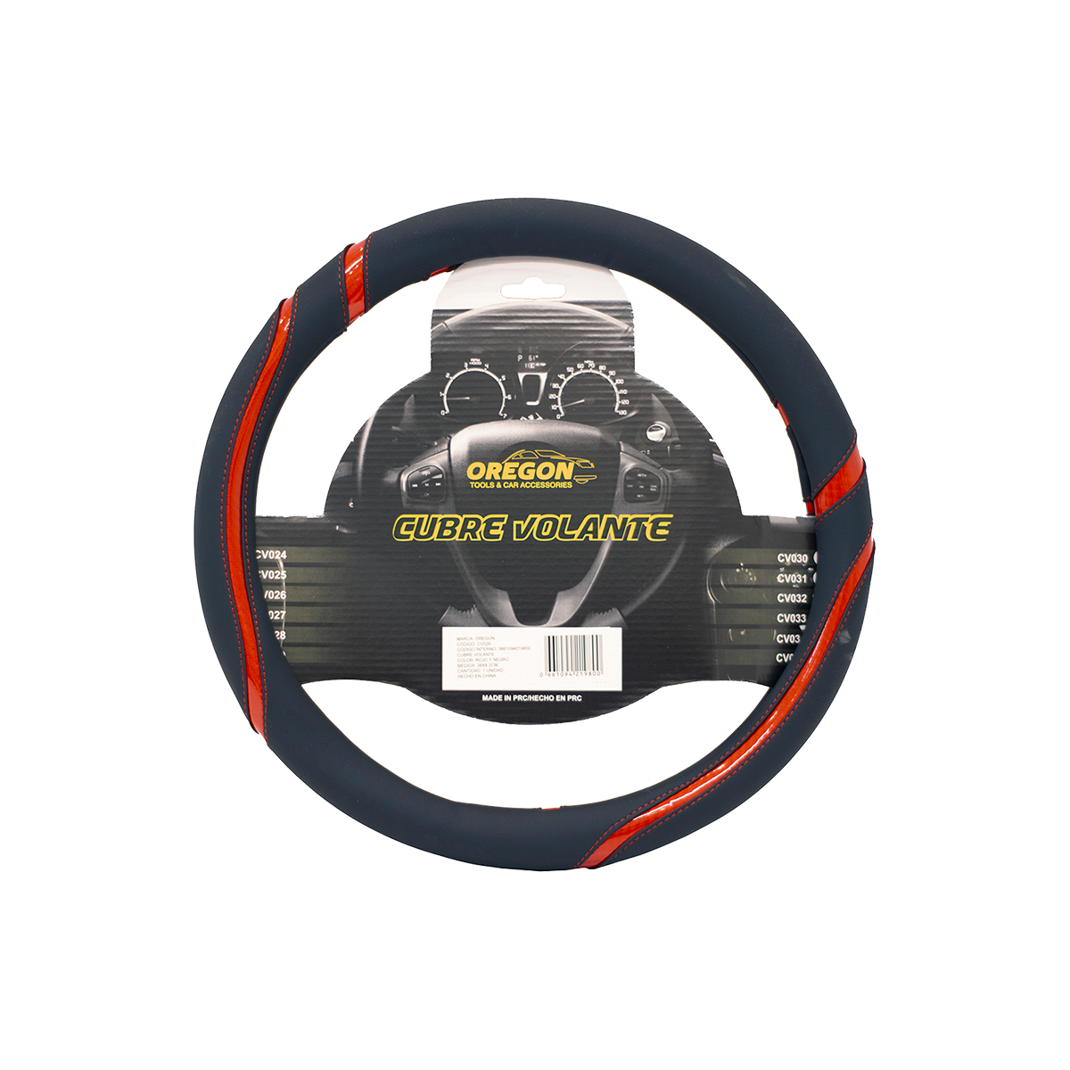 CV026 CUBRE VOLANTE CUERO SINTENTICO PREMIUM NEGRO CON BORDES ROJOS 38CM X 8.2CM