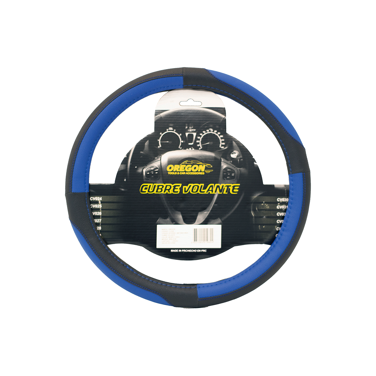 CV028 CUBRE VOLANTE CUERO SINTENTICO PREMIUM NEGRO Y AZUL 38CM X 8.2CM