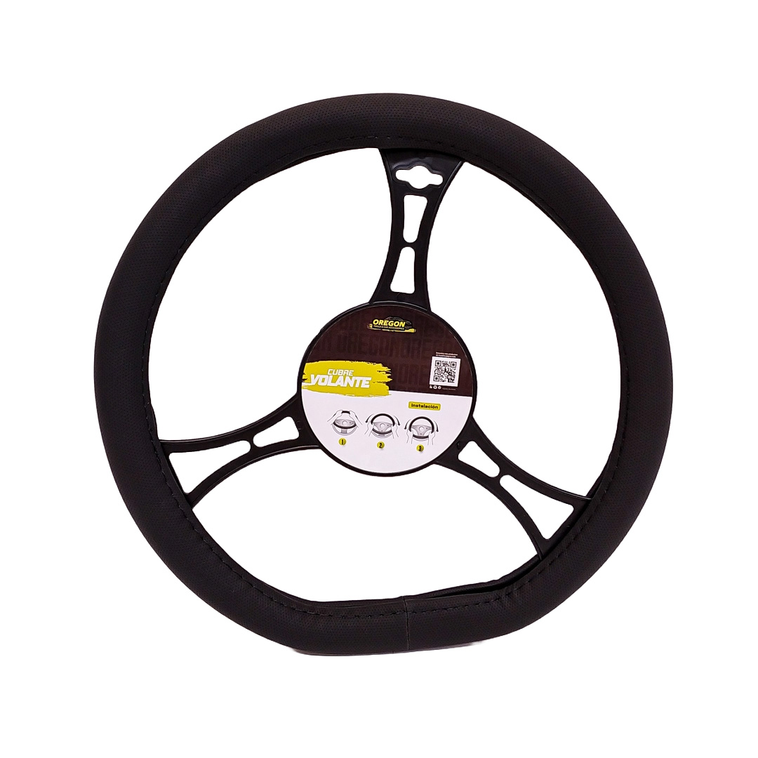 CV033 CUBRE VOLANTE CUERO SINTENTICO PREMIUM DEPORTIVO CHATO NEGRO 38CM