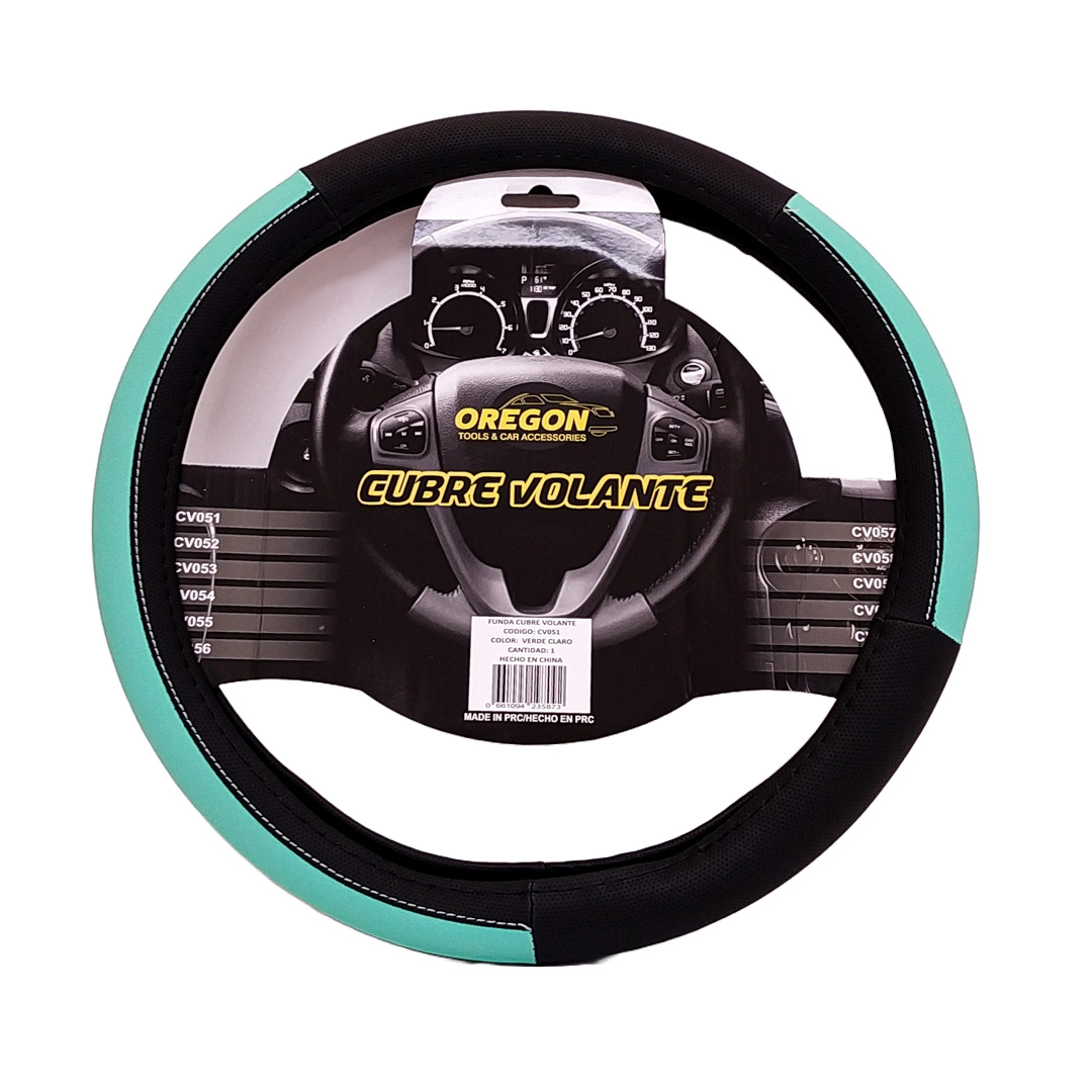 CV051 CUBRE VOLANTE MODELO LEMANS NEGRO / CELESTE CUERO SINTETICO 38*8.2CMCAJA MASTER 25 UNIDADES