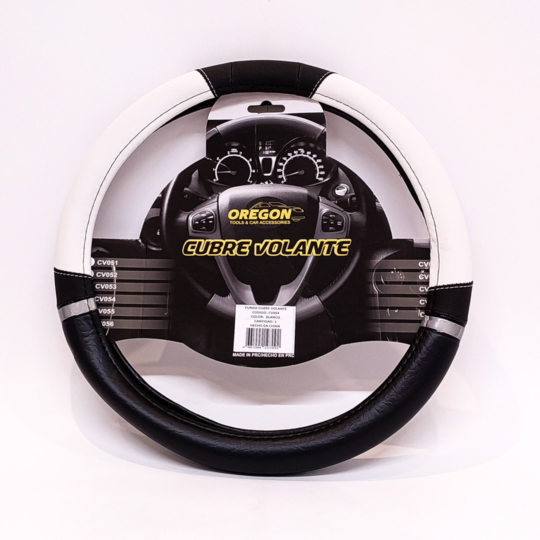 CV054 CUBRE VOLANTE MODELO NASCAR CUERO SINTENTICO NEGRO / BLANCO 38*8.2CM 25 UNIDADES POR CAJA