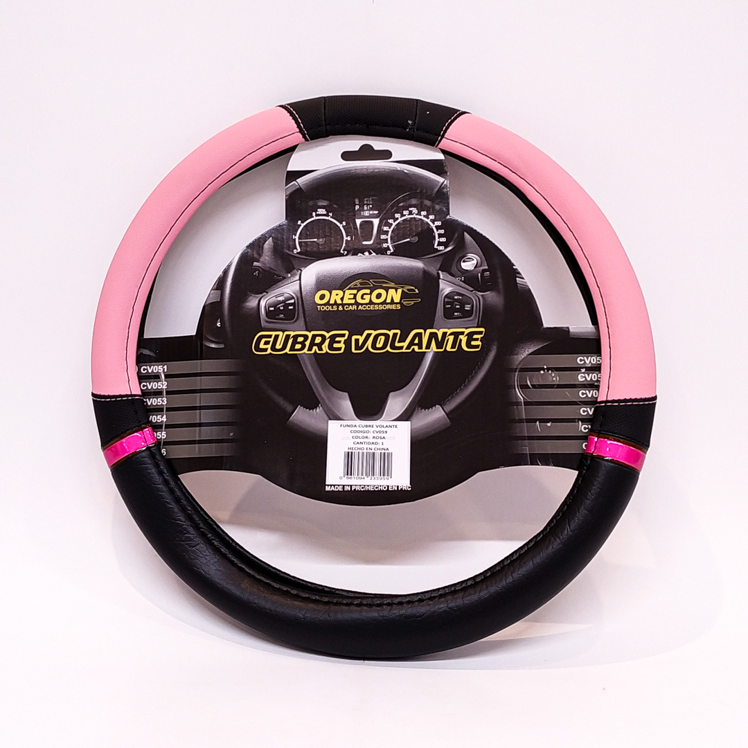 CV059 CUBRE VOLANTE MODELO NASCAR CUERO SINTENTICO NEGRO / ROSA 38*8.2CM 25 UNIDADES POR CAJA