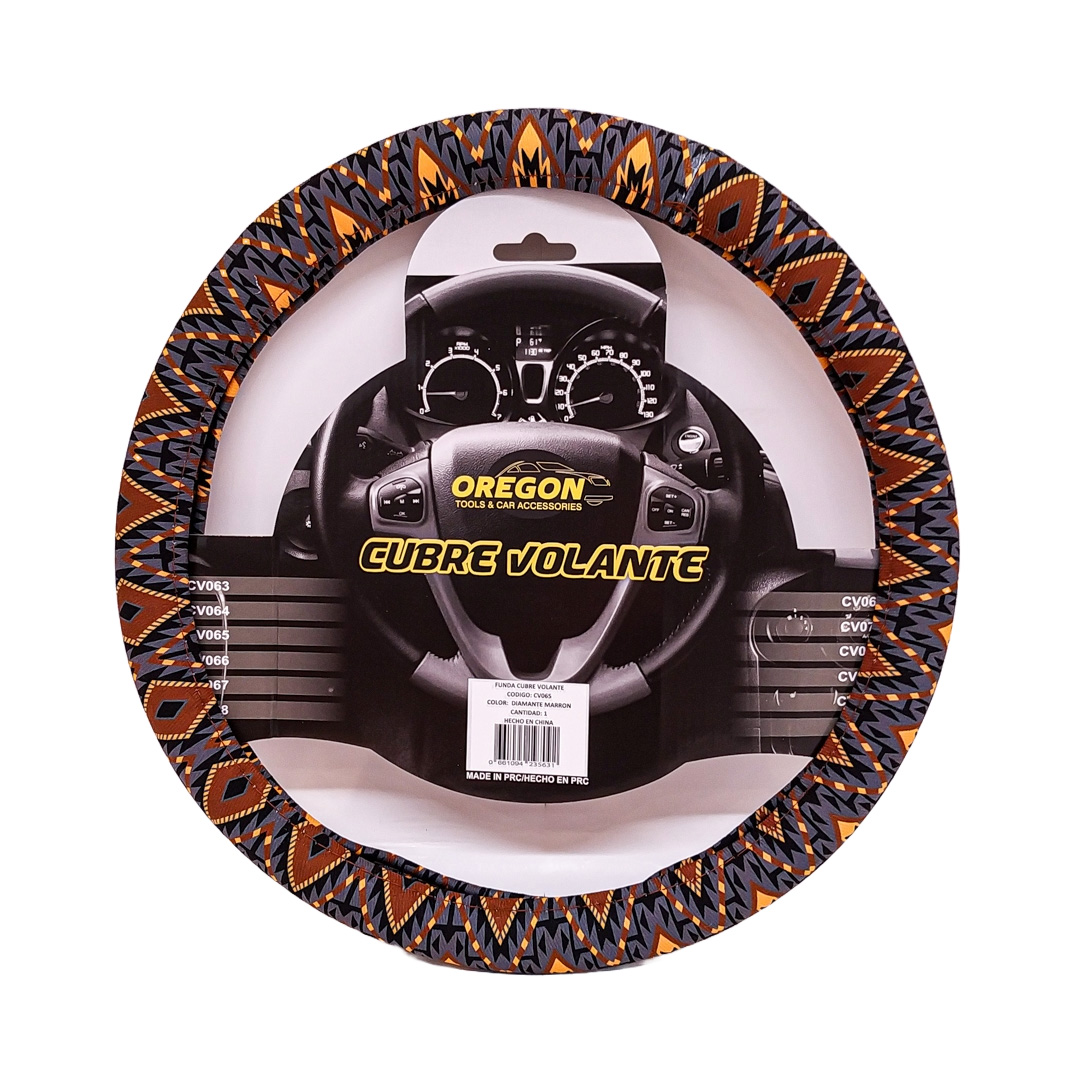 CV065 CUBRE VOLANTE MODELO CIRCO LOCO TELA NARANJA / GRIS 38*8.2CMCAJA MASTER 25 UNIDADES