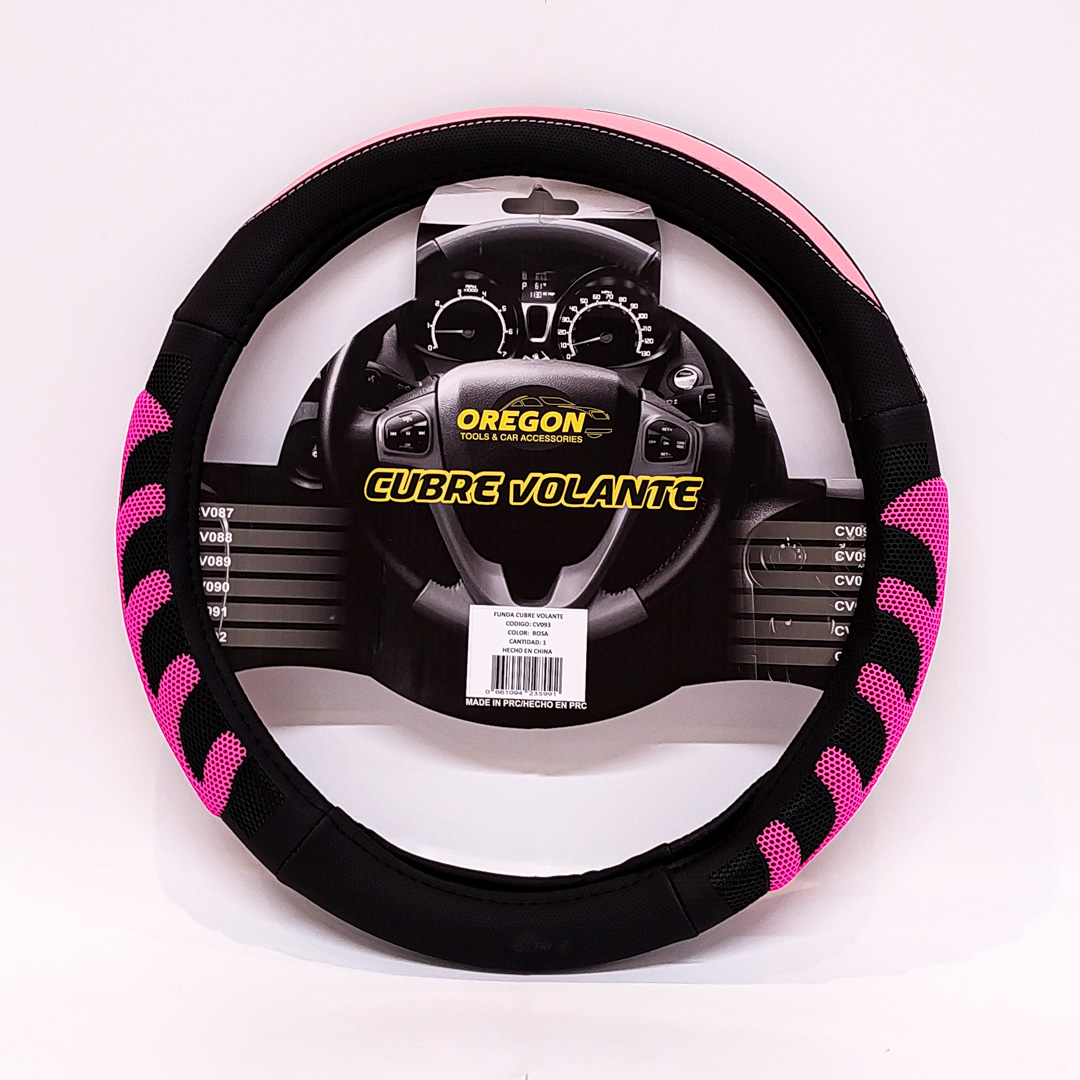 CV093 CUBRE VOLANTE MODELO GRAND PRIX CUERO SINTENTICO NEGRO / ROSA 38*8.2CM 25 UNIDADES POR CAJA