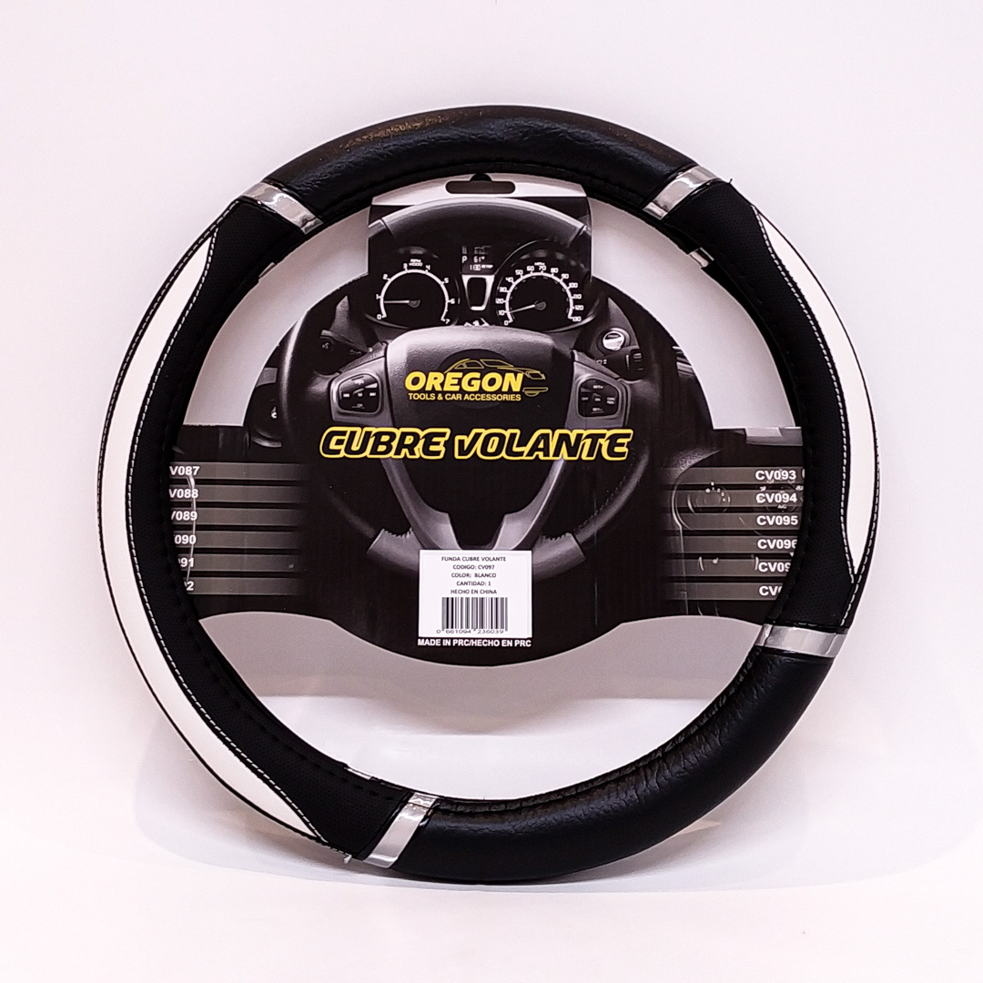 CV045 CUBRE VOLANTE MODELO LEMANS NEGRO / BLANCO CUERO SINTETICO 38*8.2CMCAJA MASTER 25 UNIDADES