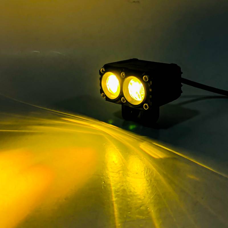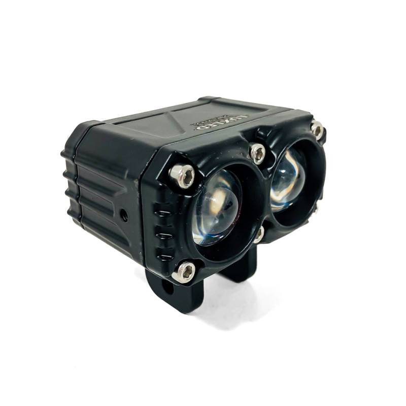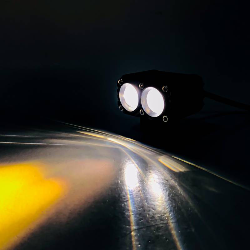 DJ-U1010W OFF ROAD FARO DE LED UNIVERSAL RECTANGULAR DOBLE LUPA COLOR BLANCO Y AMBAR 12V / 24V MEDIDAS 7.3 CM * 6.4 CM * 6,8 CM