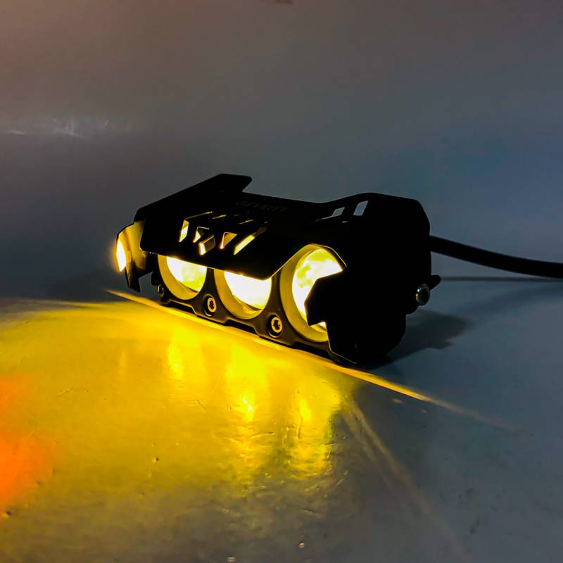 DJ-U1110W OFF ROAD FARO DE LED UNIVERSAL RECTANGULAR TRIPLE LUPA COLOR BLANCO Y AMBAR 12V / 24V MEDIDAS 10,4 CM * 4,3 CM * 3,8 CM