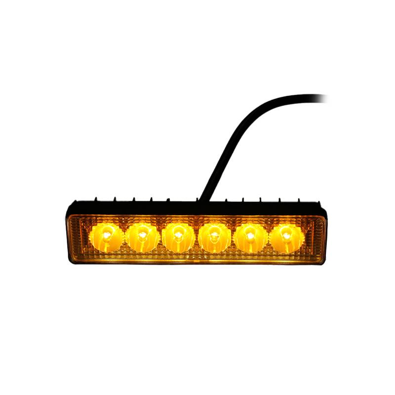 DJ1112AMB OFF ROAD FARO DE LED UNIVERSAL RECTANGULAR 18 WATTS (6 LED 3 WATTS) COLOR AMBAR 12V / 24V - HAZ DE LUZ SPOT -