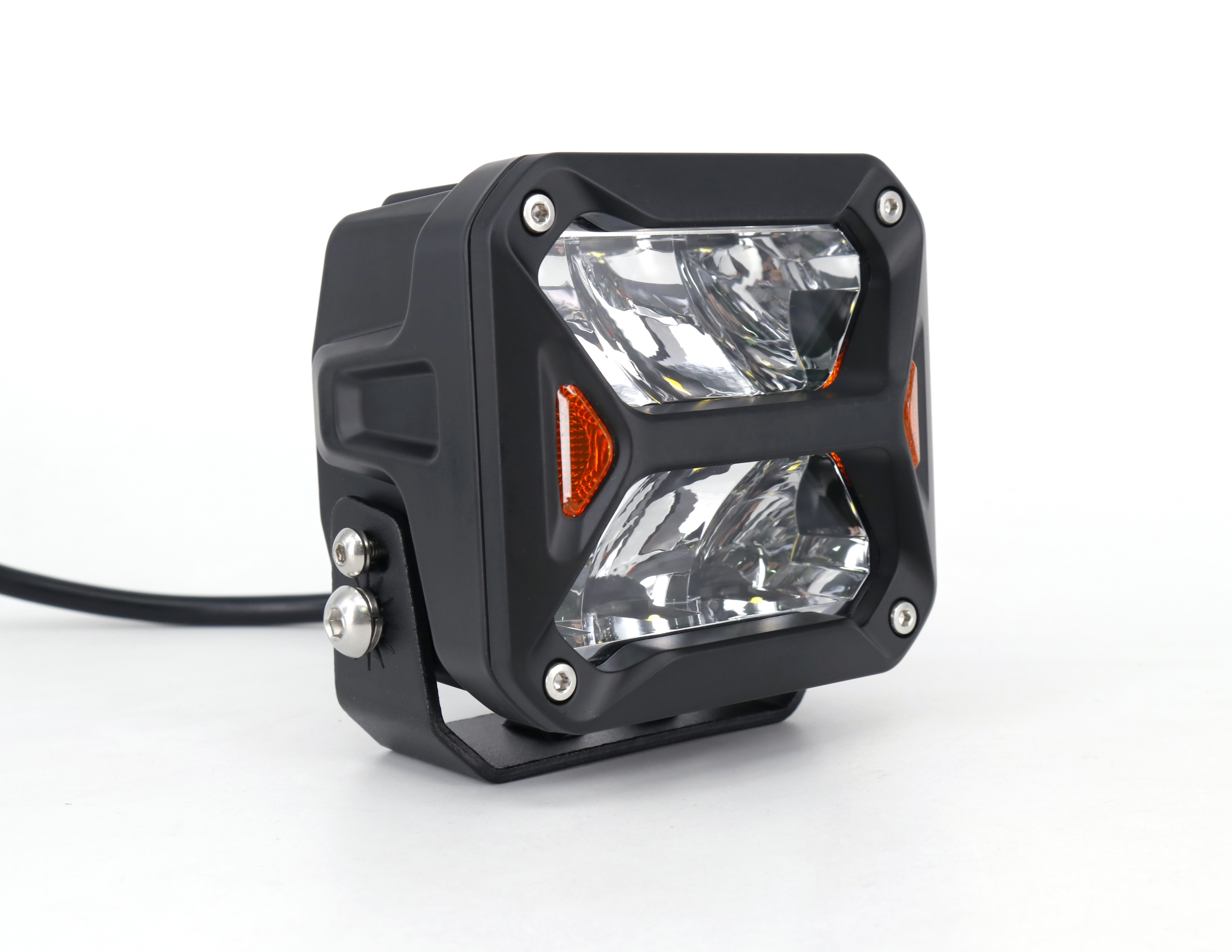 DJ5900CROSS OFF ROAD FARO DE LED UNIVERSAL CUADRADO 4'' COLOR BLANCO CON GIROS AMBAR - 60 WATTS - 6 CHIP OSRAM P9 - 12V/24V