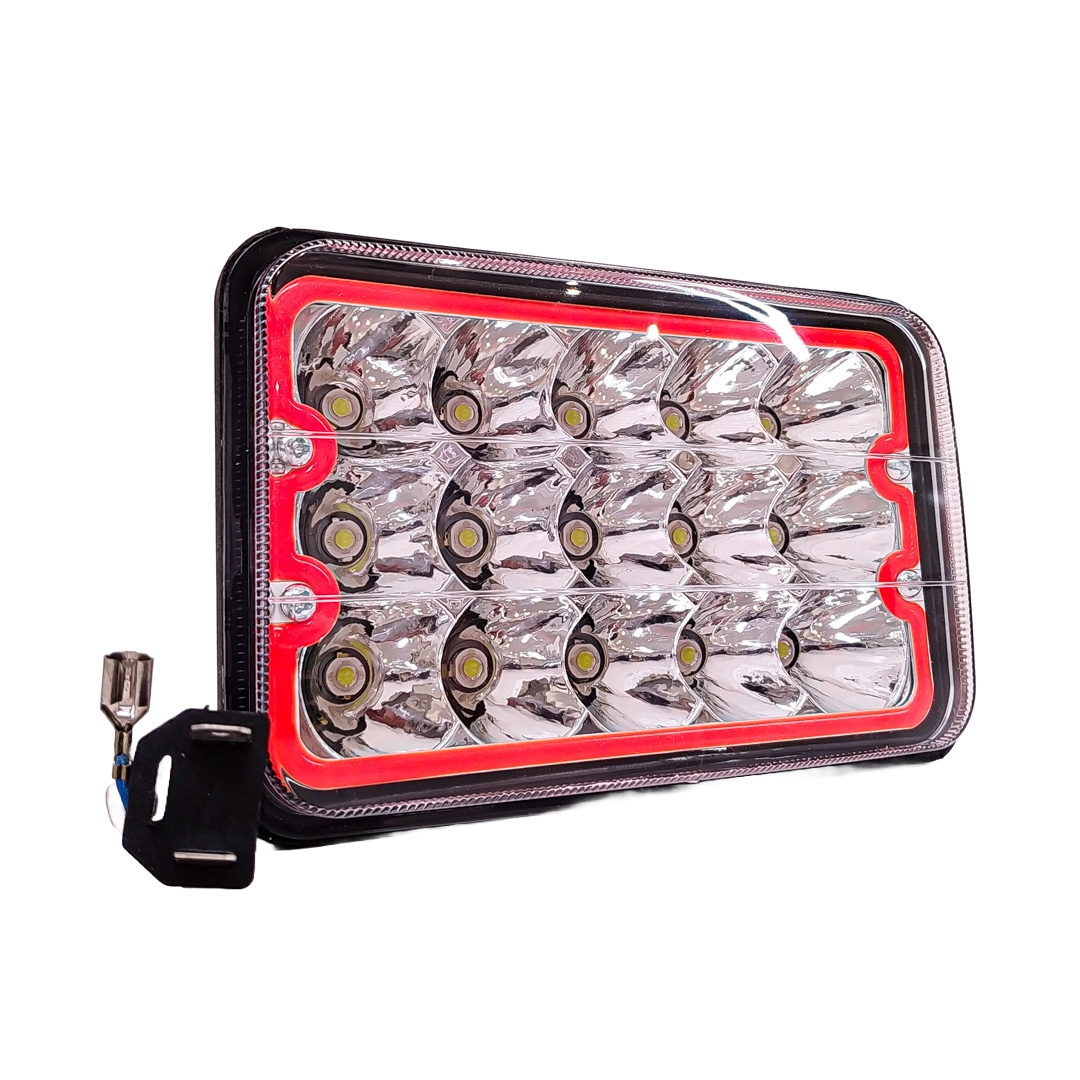 DJ5925AHARED OFF ROAD FARO DE LED UNIVERSAL LUZ LED BLANCA CON FUNCION ALTA Y BAJA Y OJO DE ANGEL ROJO 9V-36V 15 LED - 45 WATTS MEDIDAS 5