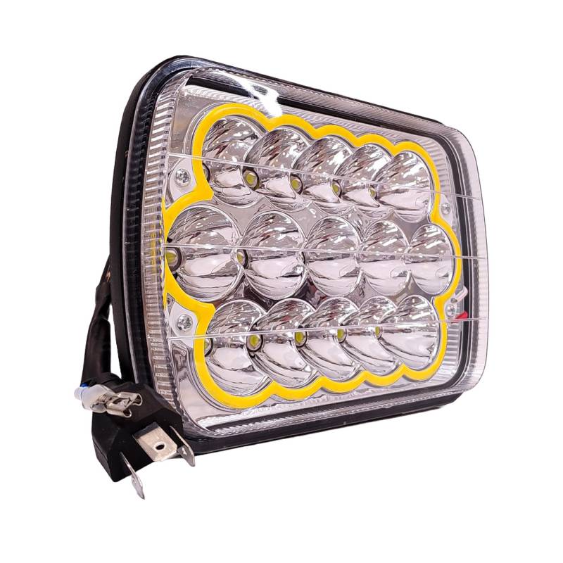 DJ5930HAYELLO OFF ROAD FARO DE LED UNIVERSAL LUZ LED BLANCA CON FUNCION ALTA Y BAJA Y OJO DE ANGEL AMBAR 9V-36V 15 LED - 60 WATTS MEDIDAS 7