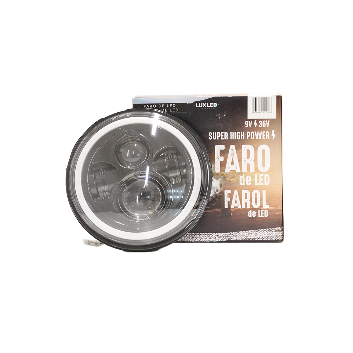 DJ6930AHALO OFF ROAD FARO DE LED REDONDO 7 USO IDEAL JEEP WRANGLER - RENEGADE / MOTO HARLEY DAVIDSON - ROYAL ENFIELD CON FUNCION ALTA Y BAJA - HAZ DE LUZ SPOT
