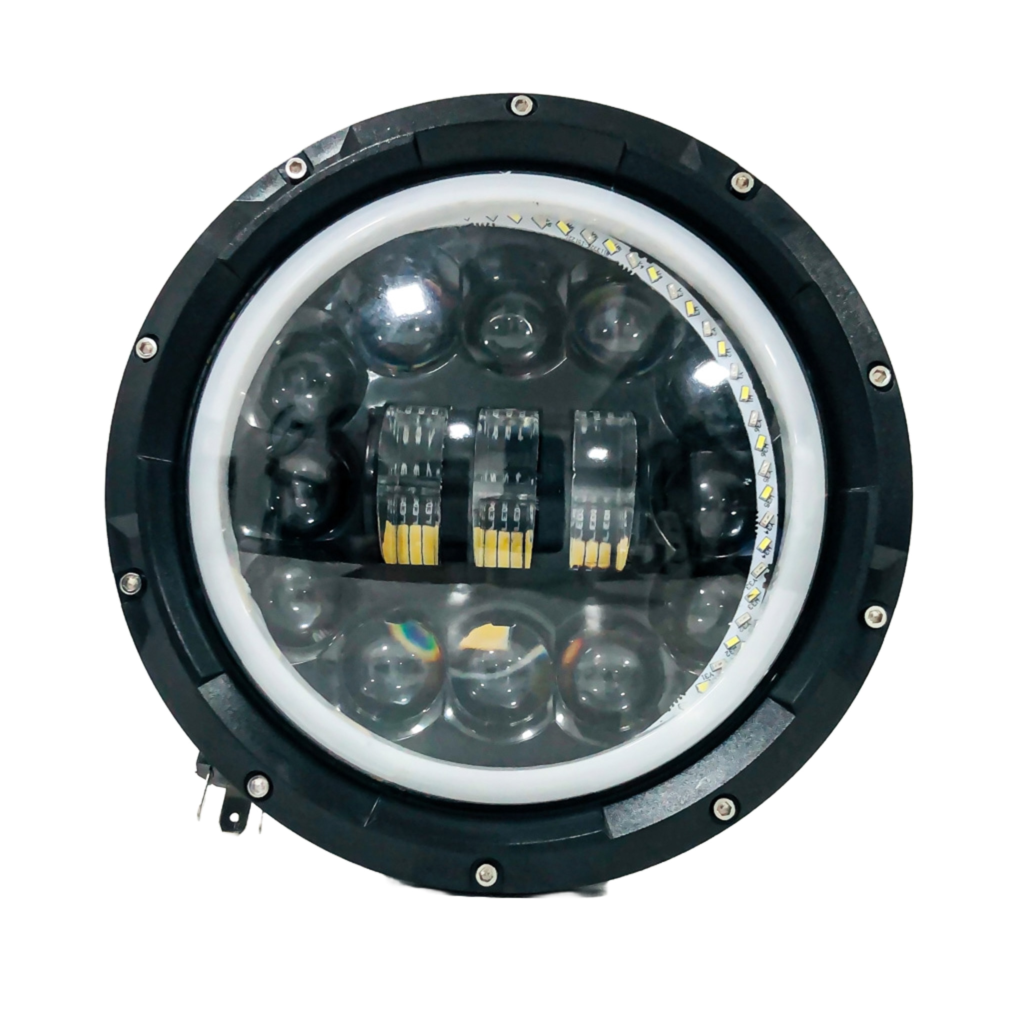 REDONDO 7 12 LED EPISTAR BLANCO + 3 LED CREE AMBAR USO IDEAL JEEP WRANGLER - RENEGADE / MOTO HARLEY DAVIDSON - ROYAL ENFIELD CON FUNCION ALTA Y BAJA + OJO DE ANGEL BLANCO Y AMBAR Y AMBAR- HAZ DE LUZ SPOT - 40 WATTS 12V A 36V