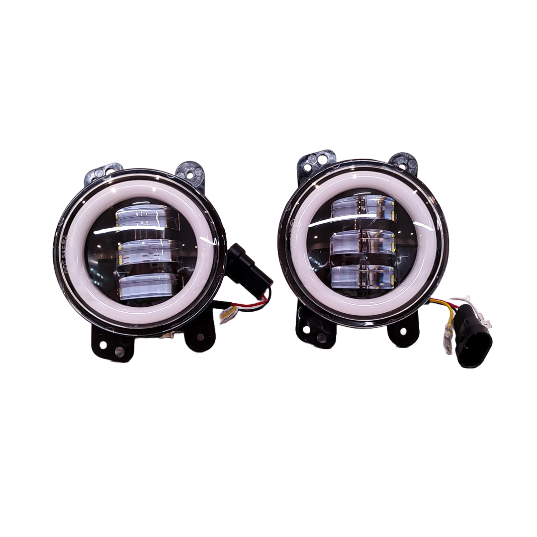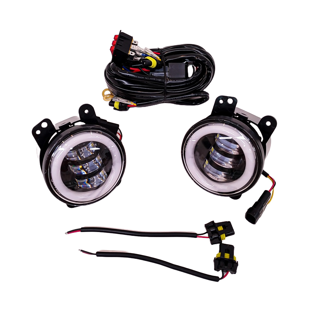DJ6940CROSS OFF ROAD FARO DE LED UNIVERSAL LUZ LED BLANCA CON OJO DE ANGEL BLANCO Y FUNCION DE GIROS Y BALIZAS AMBAR CON CABLEADO DE INSTALACION Y TECLA AUXILIA