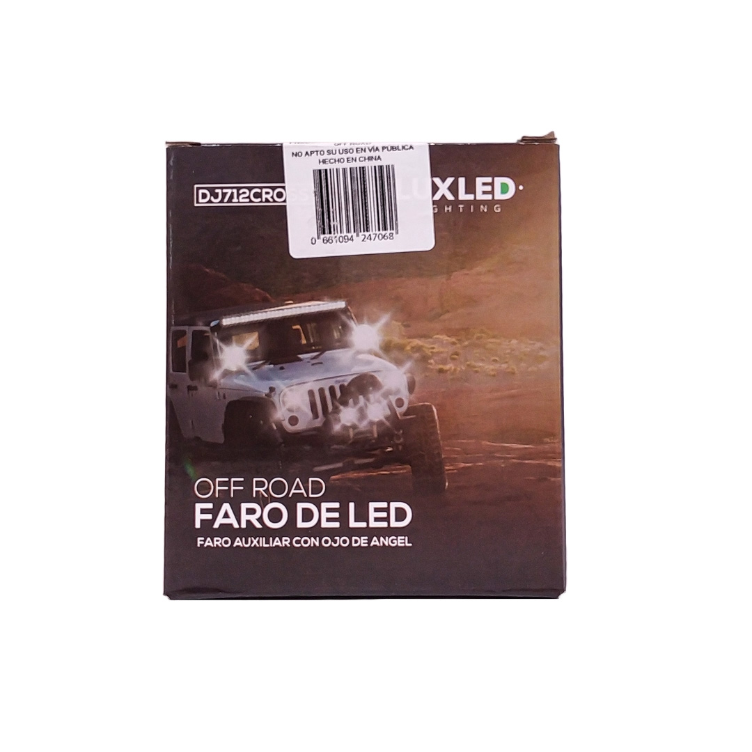 DJ712CROWHITE OFF ROAD FARO DE LED UNIVERSAL LUZ LED BLANCA ESTABLE CON OJO DE ANGEL DAYTIME RUNNING BLANCO Y GIROS AMBAR 9V-36V 1 LED - 40 WATTS MEDIDAS 3.5