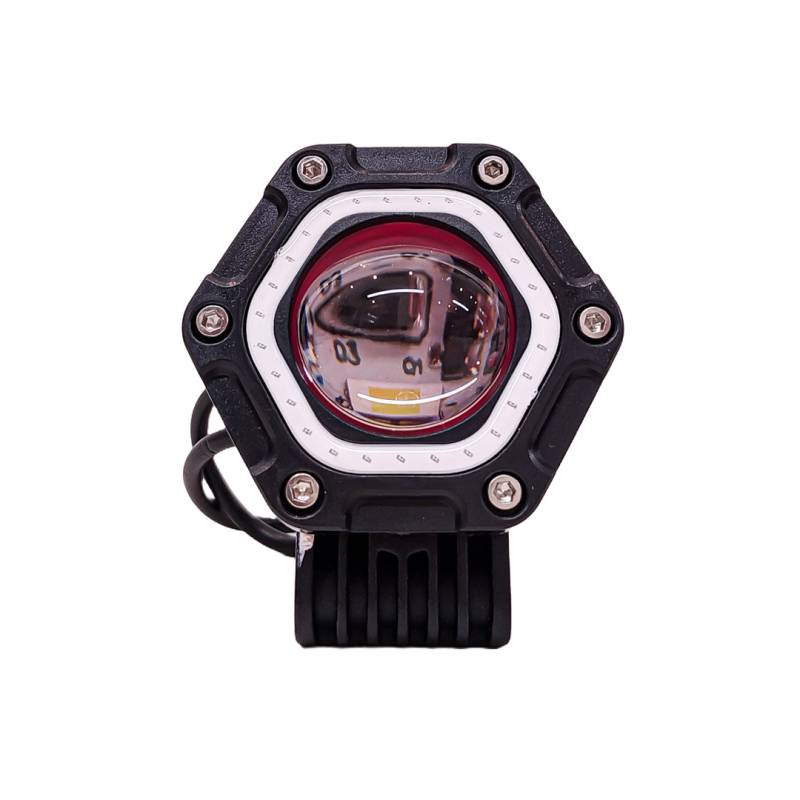 DJ712JEEPBLUE OFF ROAD FARO DE LED UNIVERSAL LUZ LED BLANCA ESTABLE CON FUNCION FLASH Y OJO DE ANGEL AZUL 9V-36V 1 LED - 40 WATTS MEDIDAS 58*65*100(mm)