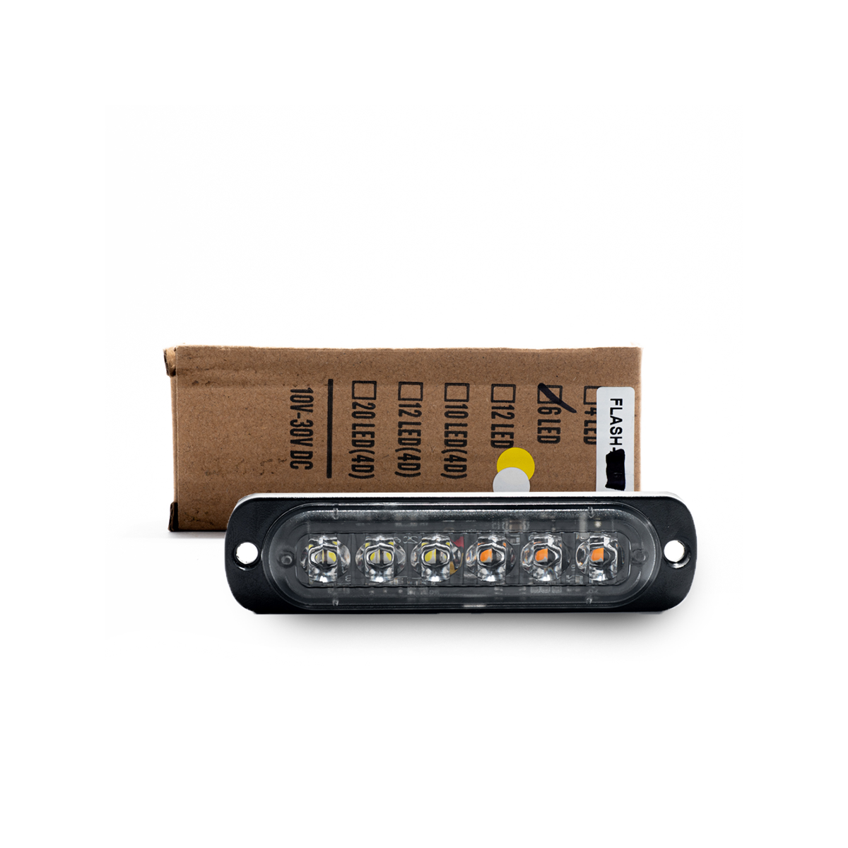 FLASH-BYA OFF ROAD FARO DE LED UNIVERSAL 12V - 6 LED CHAT PARA PARRILLA / PARAGOLPE CON LUZ DESTELLANTE BLANCA Y AMBAR