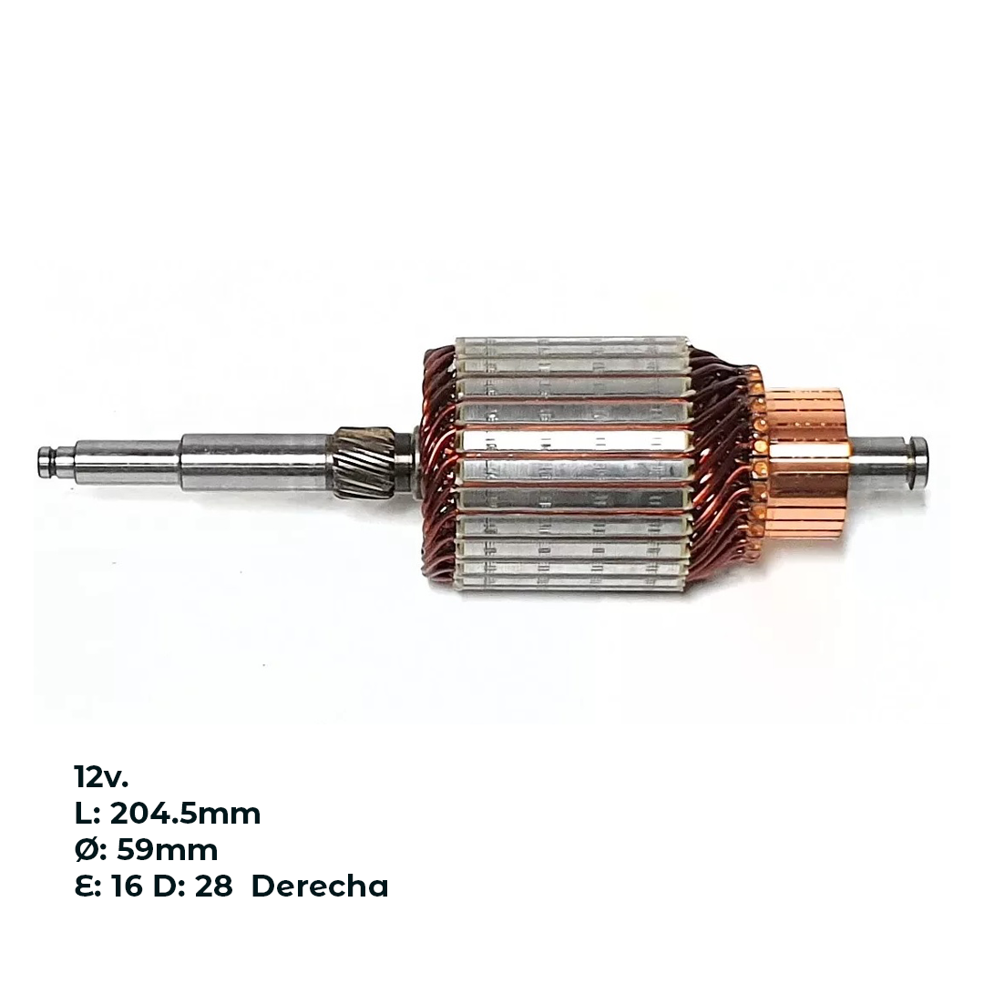 INDU3042 INDUCIDO - BOBINA DE ARRANQUE TIPO VALEO PEUGEOT 405, 505, 205, RENAULT 19. 12V. L: 189MM Ø: 60MM E: 9 D: 19 IV1909.10N INN VAL003 IVA-995 IVA1581 PA42