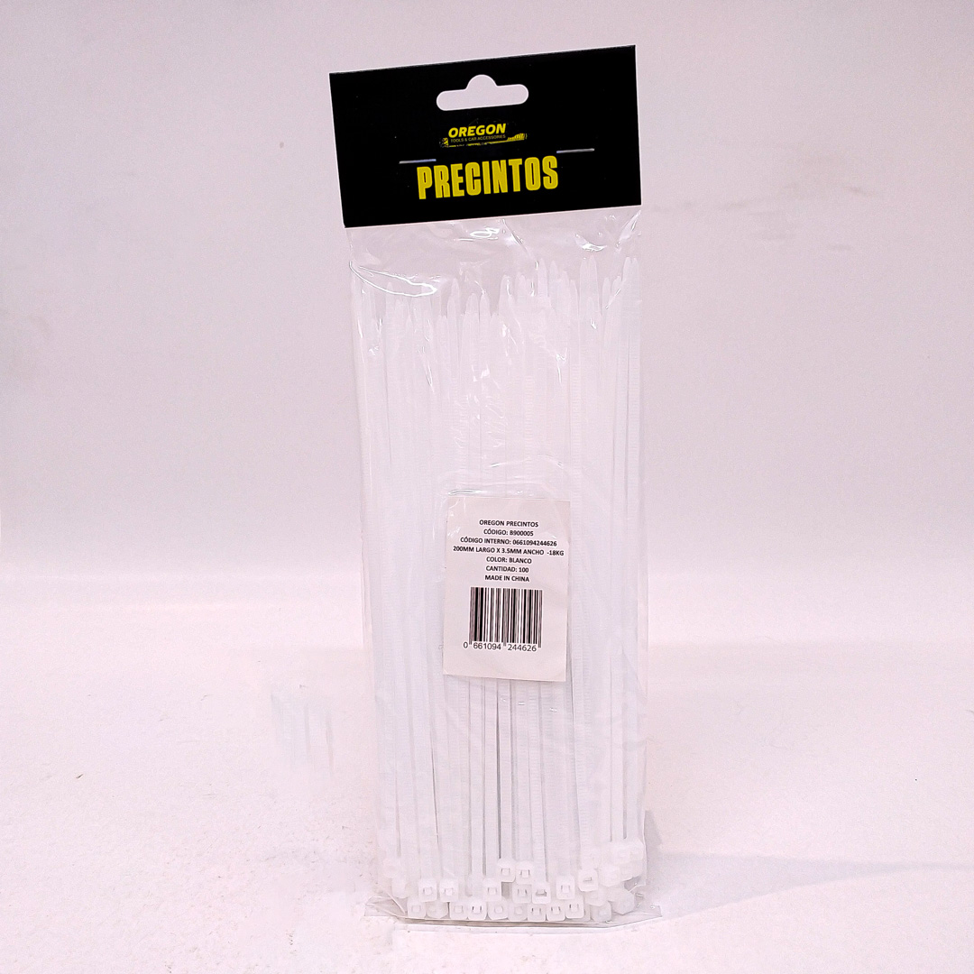 B900005 BOLSA DE PRECINTOS (100 UNIDADES) 200MM LARGO X 3.5MM ANCHO -18KG COLOR BLANCO