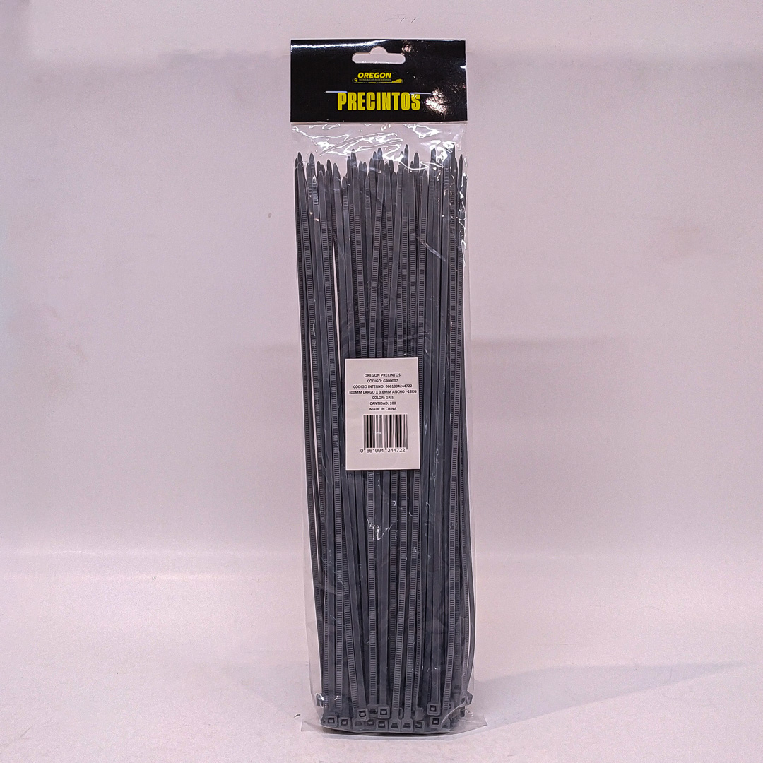 G900007 BOLSA DE PRECINTOS (100 UNIDADES) 300MM LARGO X 3.6MM ANCHO -18KG COLOR GRIS