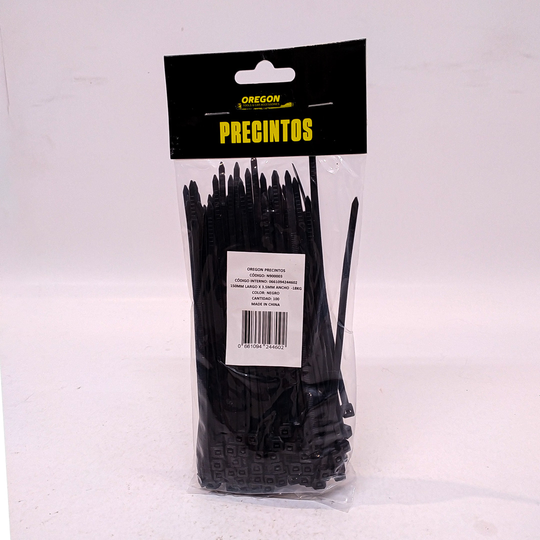 N900003 BOLSA DE PRECINTOS (100 UNIDADES) 150MM LARGO X 3.5MM ANCHO -18KG COLOR NEGRO