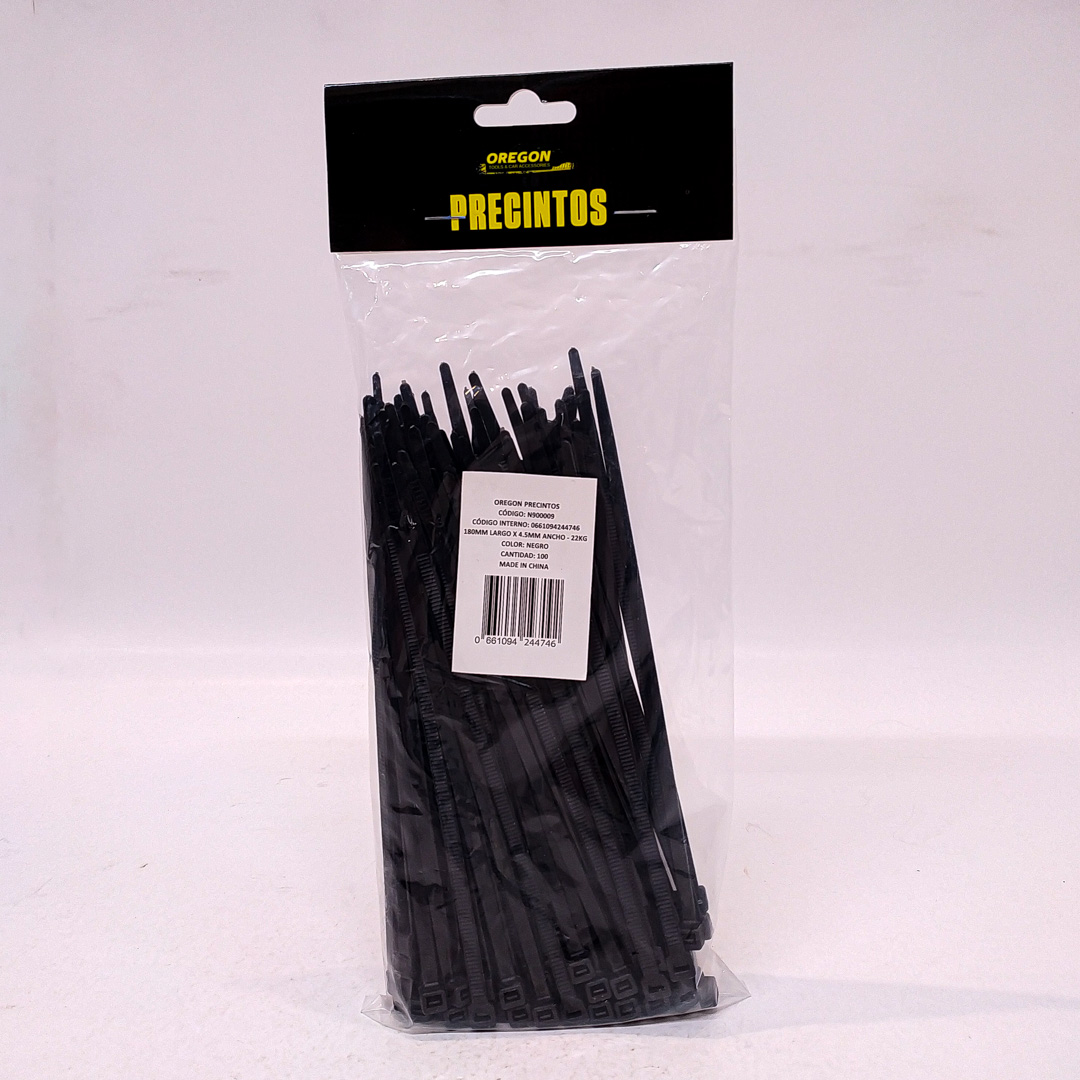 N900009 BOLSA DE PRECINTOS (100 UNIDADES) 180MM LARGO X 4.5MM ANCHO - 22KG COLOR NEGRO