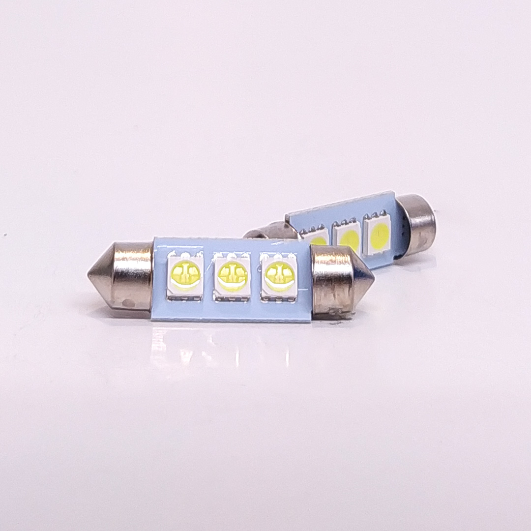 BLISTER X 2 TUBULAR - FESTOON 3 LED 5050 SMD 39MM - BLANCO 12V BLISTER X 2 UNIDADES
