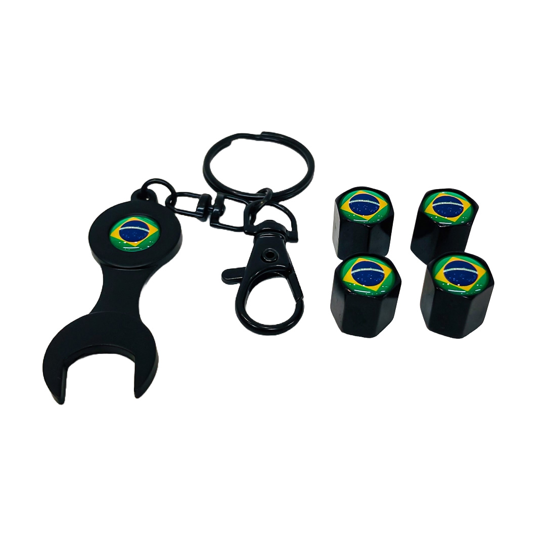 TV079 JUEGO DE TAPITAS DE VALVULA DEPORTIVA BANDERA BRAZIL NEGRA