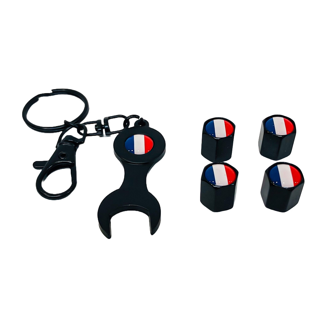 TV081 JUEGO DE TAPITAS DE VALVULA DEPORTIVA BANDERA FRANCIA NEGRA