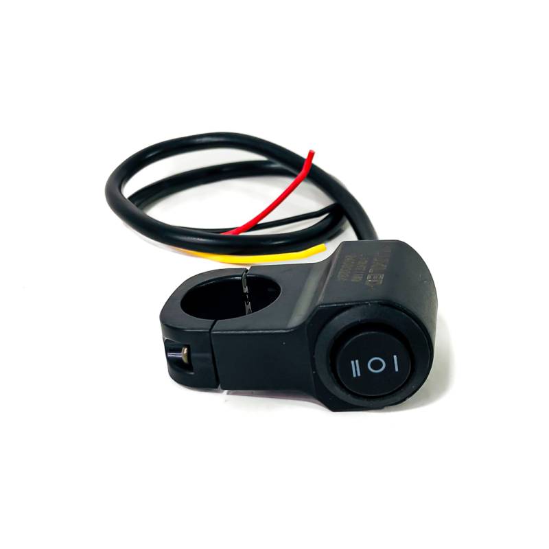 TOM014 INTERRUPTOR UNIVERSAL TECLA DE 2 PUNTOS UNIVERSAL CON SOPORTE MANUBRIO Y CABLE DE CONXEION 12V INCLUIDO. IDEAL PARA MOTOS Y BICIS. MEDIDAS 52 MM * 42MM *