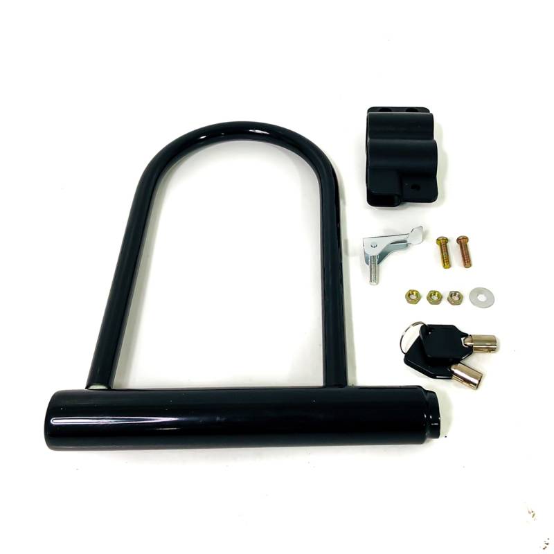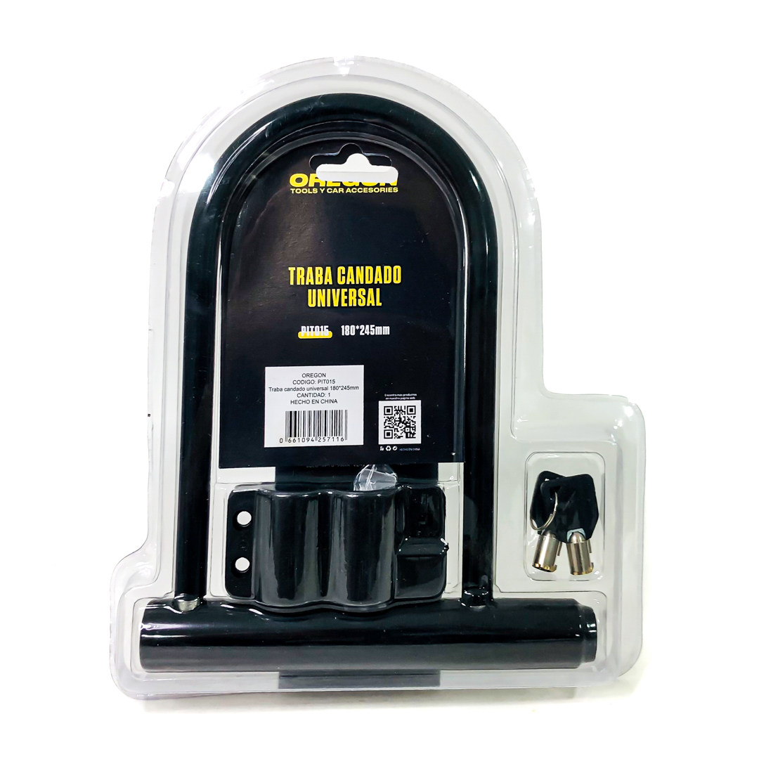 PIT015 TRABA CANDADO CON LLAVE UNIVERSAL PARA MOTOS Y BICIS COLOR NEGRO MEDIDAS 180 X 245 mm