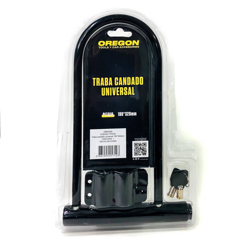 PIT016 TRABA CANDADO CON LLAVE UNIVERSAL PARA MOTOS Y BICIS COLOR NEGRO MEDIDAS 180 X 320 mm