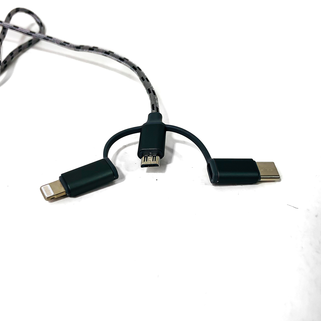 CABLE CARGADOR 3 EN 1 DE 1.20 METROS: USB A MICRO USB, LIGHTING, TIPO C CONECTORES DE ALUMINIO CARGA RAPIDA.
