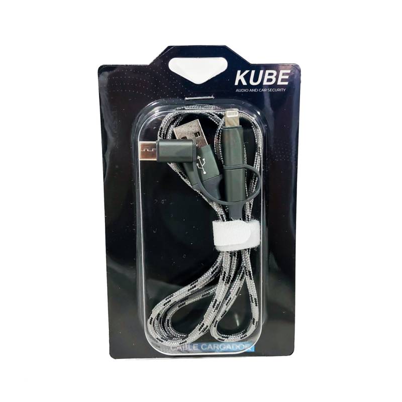 KB-CA6EN1IRO CABLE CARGADOR CABLE CARGADOR 3 EN 1 DE 1.20 METROS: USB A MICRO USB, LIGHTING, TIPO C CONECTORES DE ALUMINIO CARGA RAPIDA.