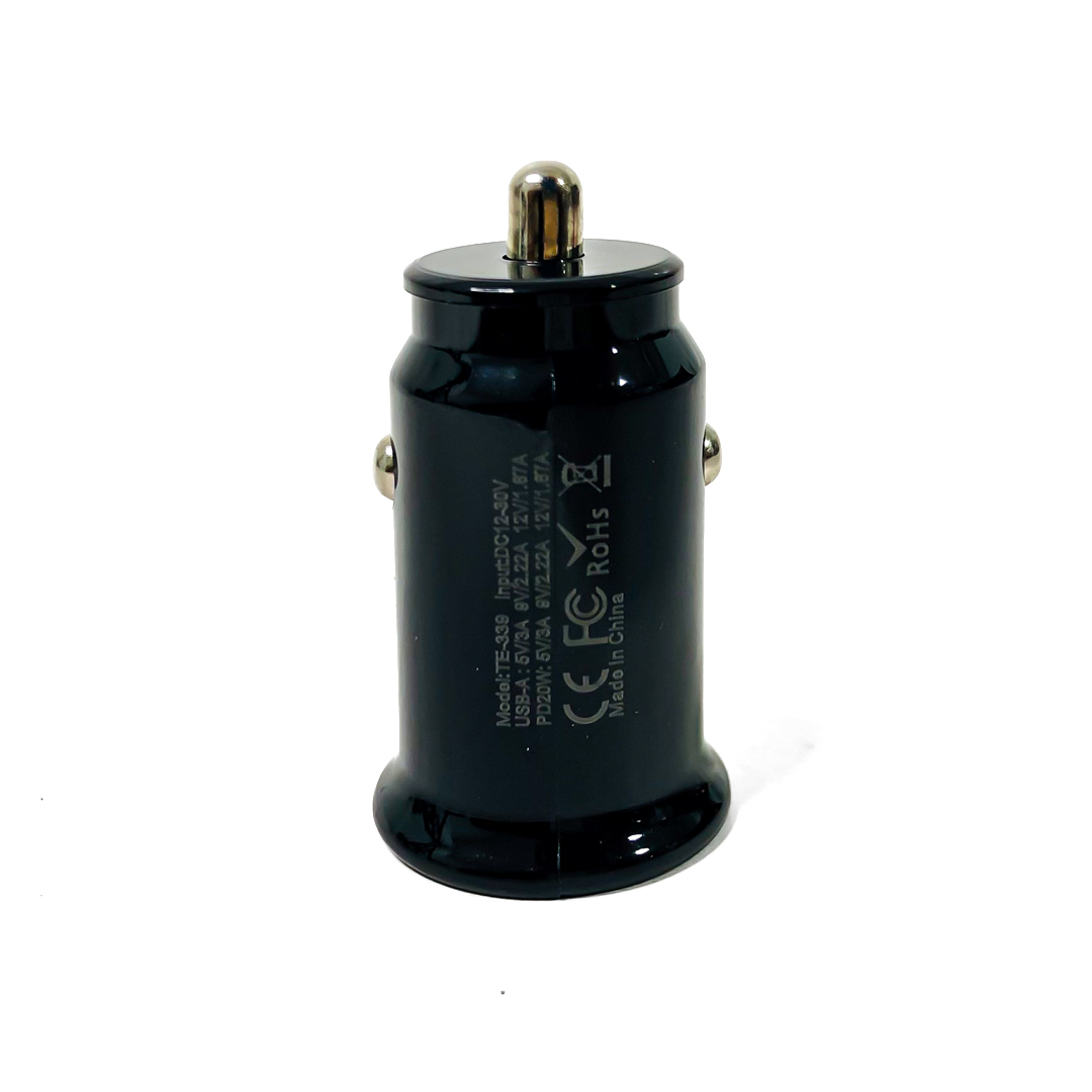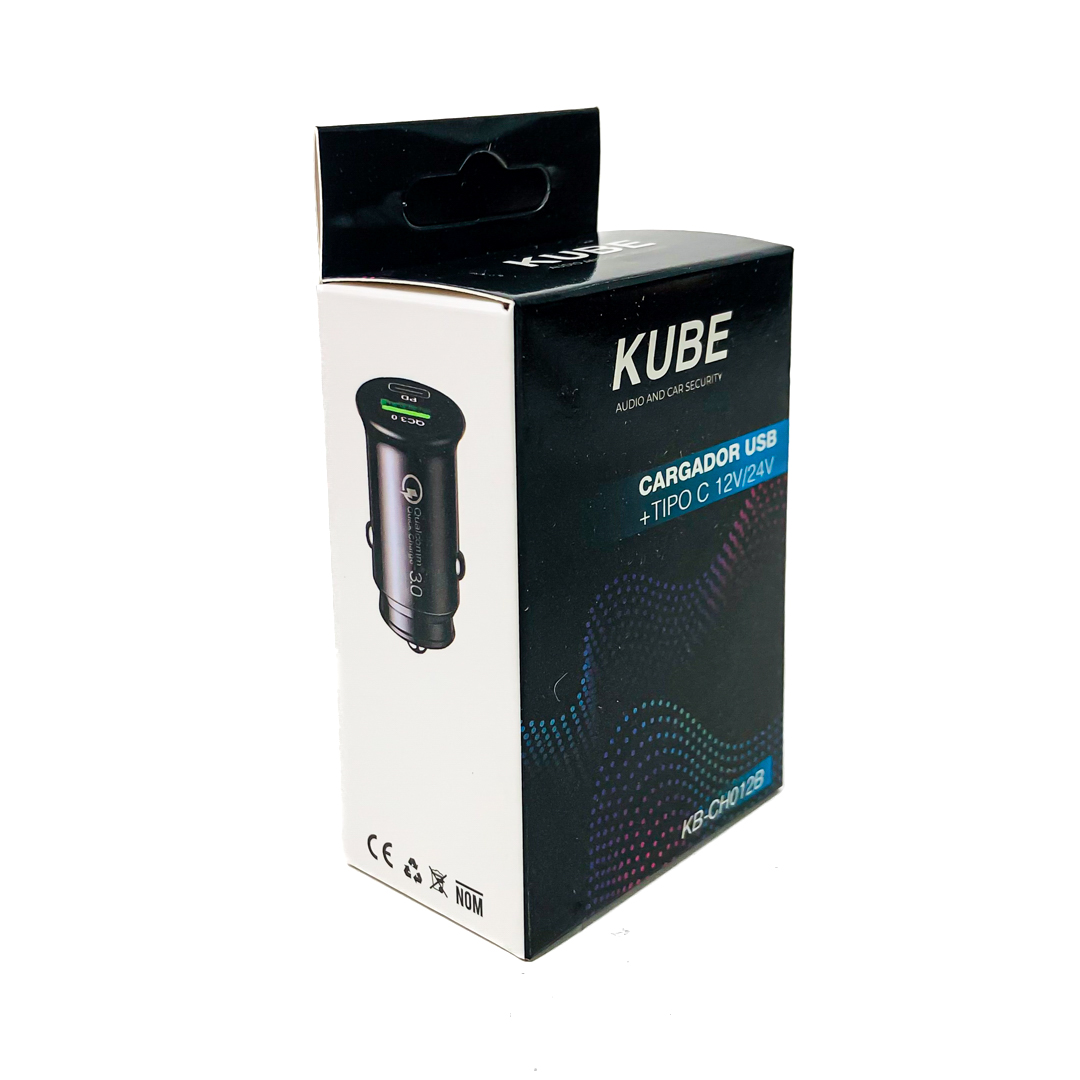 KB-CH012B CARGADOR 12V / 24V CARGADOR USB + TIPO C 12V / 24V 20 WATTS COLOR NEGRO