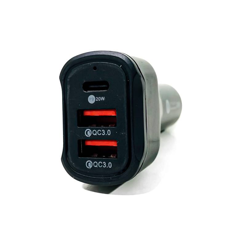 CARGADOR 2 USB + TIPO C 12V / 24V 20 WATTS COLOR NEGRO