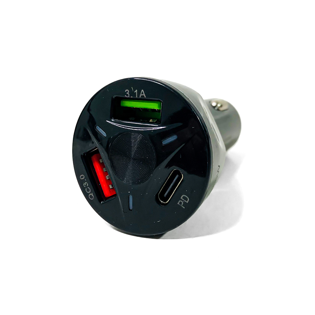 KB-CH015B CARGADOR 12V / 24V CARGADOR 2 USB + TIPO C 12V / 24V 20 WATTS COLOR NEGRO