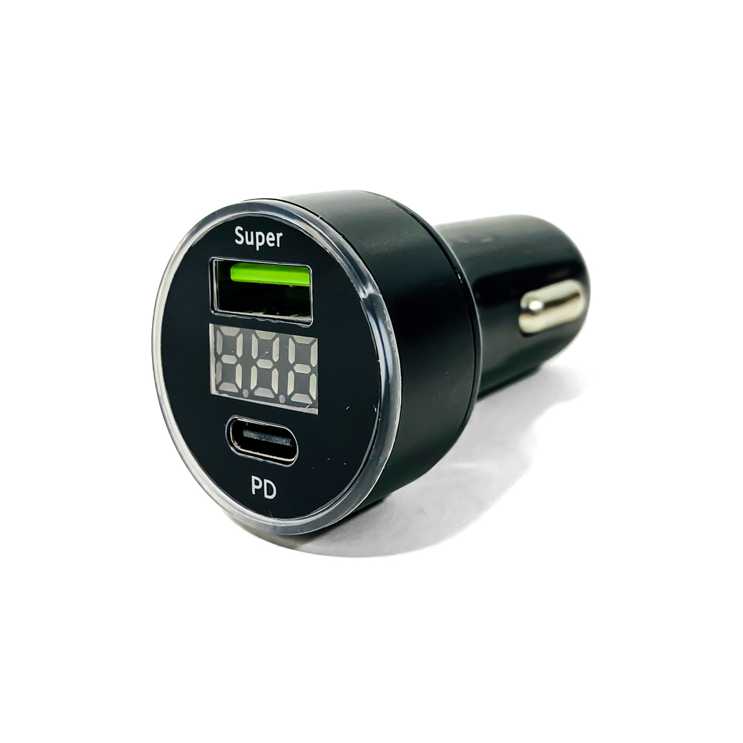 KB-TCVOLTB CARGADOR CON VOLTIMETRO CARGADOR USB + TIPO C 12V / 24V 20 WATTS + VOLTIMETRO COLOR NEGRO CON ARO NEGRO.