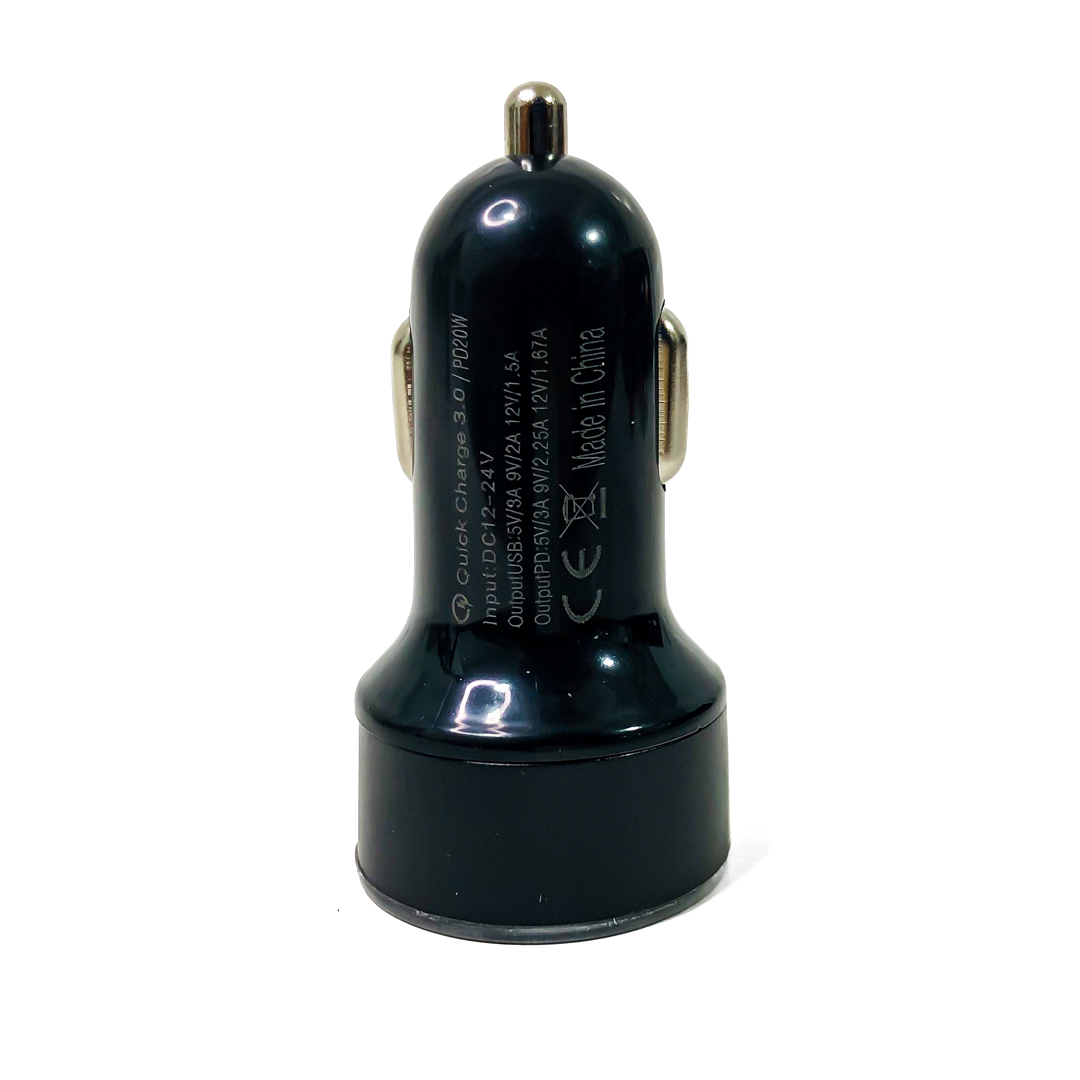 CARGADOR USB + TIPO C 12V / 24V 20 WATTS + VOLTIMETRO COLOR NEGRO CON ARO NEGRO.