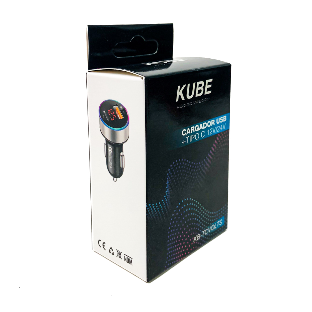 KB-CH012B CARGADOR 12V / 24V CARGADOR USB + TIPO C 12V / 24V 20 WATTS COLOR NEGRO